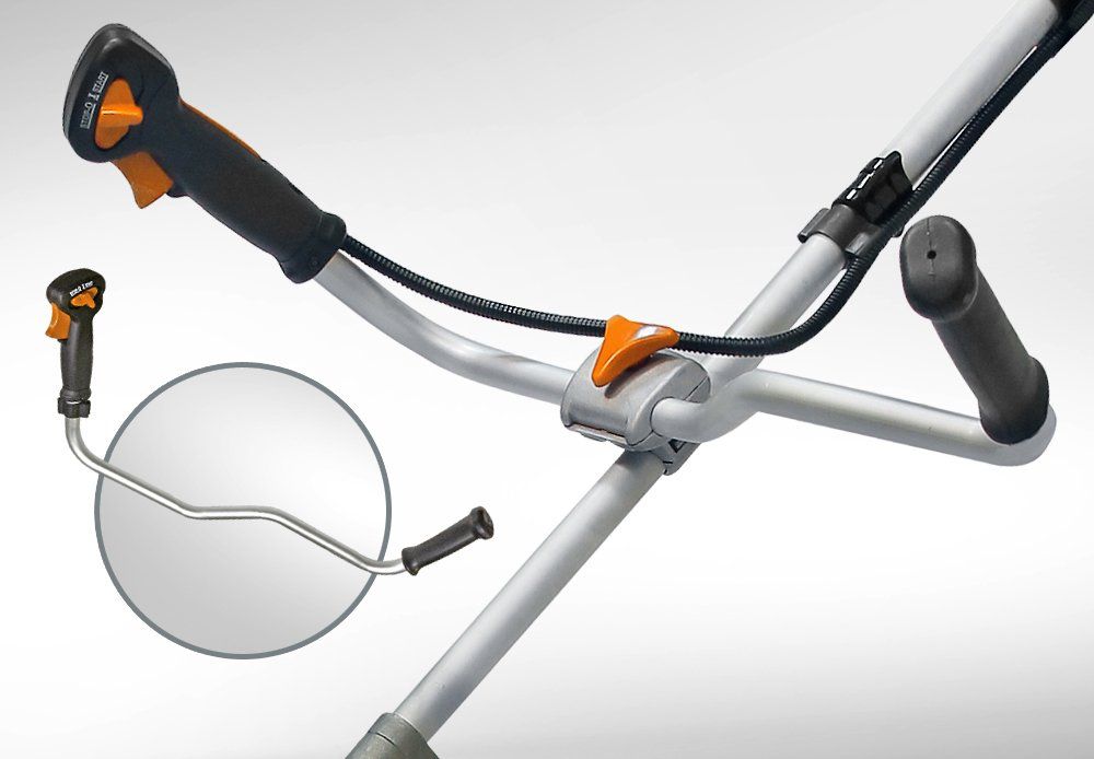 "Велосипедная" цельная мнонорукоятка управления. Асимметричность монорукоятки обеспечивает удобный хват и комфортное положение рук во время работы.