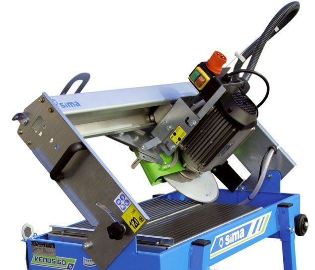 Камнерезный станок SIMA Venus 60 является одним из самых компактных камнерезных станков, который справляется с теми же обязанностями, что и более крупное оборудование. Он прекрасно подходит для работ на строительных объектах или для сдачи в аренду, так как из-за своих компактных размеров, прекрасно помещается в салон легкового автомобиля или кузов грузового. Размеры диска и стола позволяют распиливать такие материалы как керамогранит, кирпич, блоки, плиты и другие строительные полуфабрикаты. Наклонный механизм рельса позволяет производить пропилы под углом 45 градусов.