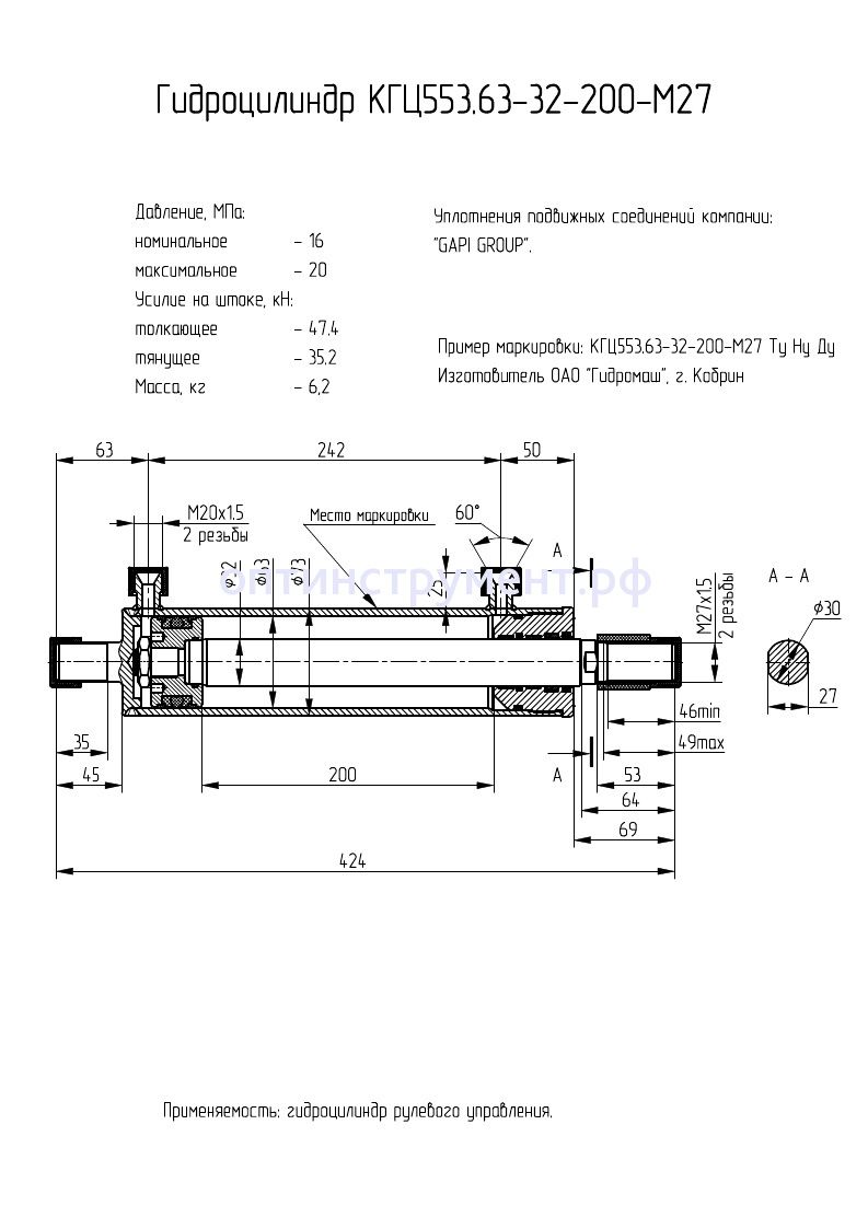 Гидроцилиндр рулевого управления КГЦ 553.63-32-200-М27 в продаже по цене 6 900 руб. в Интернет-магазине Проф-инструмент с доставкой в Йошкар-Оле. Звоните по телефону +8 (800) 302-10-51.