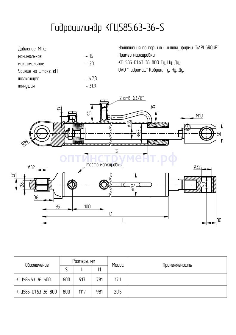 Гидроцилиндр КГЦ 585-01.63-36-800 в продаже по цене 12 540 руб. в Интернет-магазине Проф-инструмент с доставкой в Йошкар-Оле. Звоните по телефону +8 (800) 302-10-51.