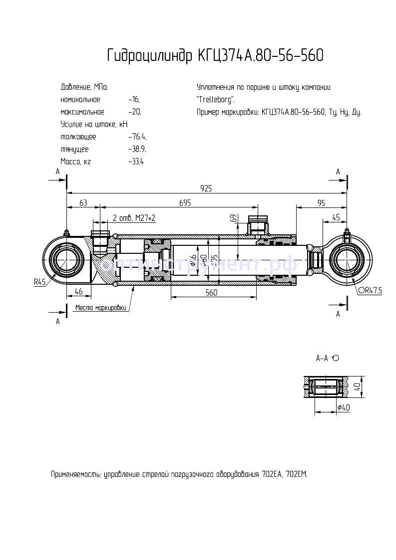 Гидроцилиндр управления стрелой погрузочного оборудования КГЦ 374А.80-56-560 в продаже по цене 16 395 руб. в Интернет-магазине Проф-инструмент с доставкой в Йошкар-Оле. Звоните по телефону +8 (800) 302-10-51.