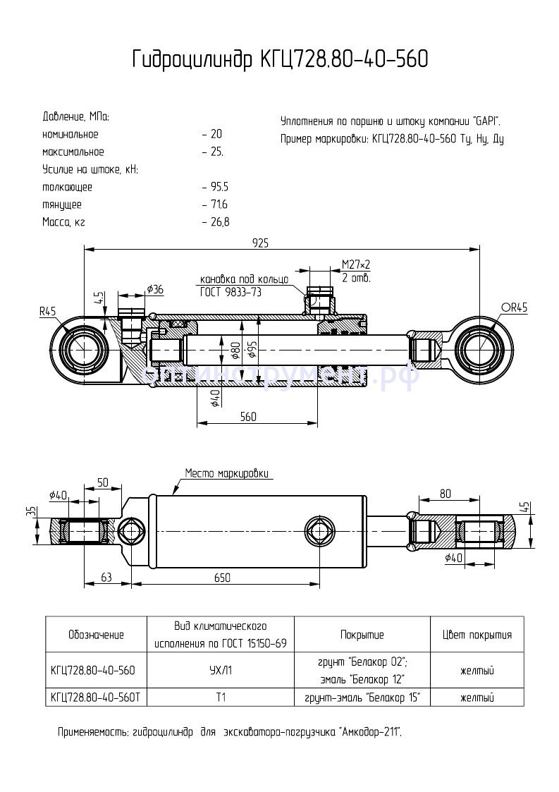 Гидроцилиндр для экскаватора-погрузчика "Амкодор-211" КГЦ 728.80-40-560 в продаже по цене 14 850 руб. в Интернет-магазине Проф-инструмент с доставкой в Йошкар-Оле. Звоните по телефону +8 (800) 302-10-51.