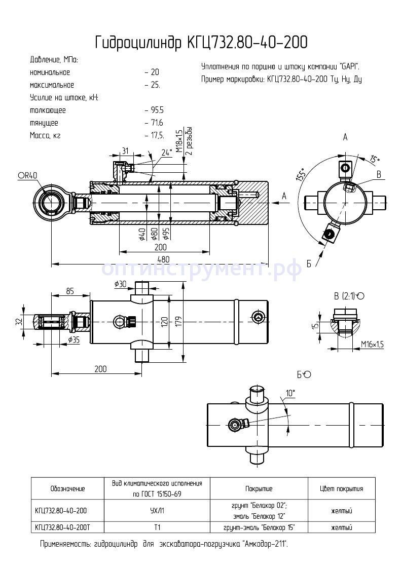 Гидроцилиндр для экскаватора-погрузчика "Амкодор-211" КГЦ 732.80-40-200 в продаже по цене 11 475 руб. в Интернет-магазине Проф-инструмент с доставкой в Йошкар-Оле. Звоните по телефону +8 (800) 302-10-51.