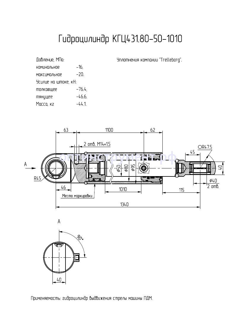 Гидроцилиндр выдвижения стрелы машины "ПДМ" КГЦ 431.80-50-1010 в продаже по цене 19 605 руб. в Интернет-магазине Проф-инструмент с доставкой в Йошкар-Оле. Звоните по телефону +8 (800) 302-10-51.