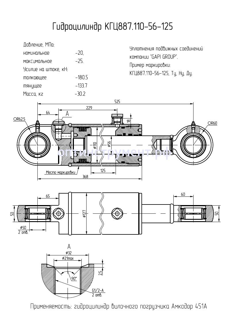 Гидроцилиндр вилочного погрузчика "Амкодор 451А" КГЦ 887.110-56-125 в продаже по цене 18 675 руб. в Интернет-магазине Проф-инструмент с доставкой в Йошкар-Оле. Звоните по телефону +8 (800) 302-10-51.