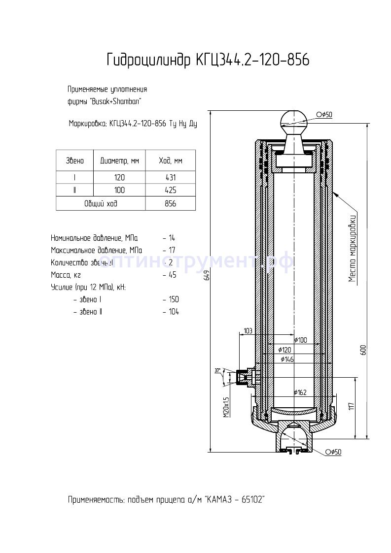 Гидроцилиндр подъема прицепа "КамАЗ-65102" КГЦ 344.2-120-856 в продаже по цене 0 руб. в Интернет-магазине Проф-инструмент с доставкой в Йошкар-Оле. Звоните по телефону +8 (800) 302-10-51.
