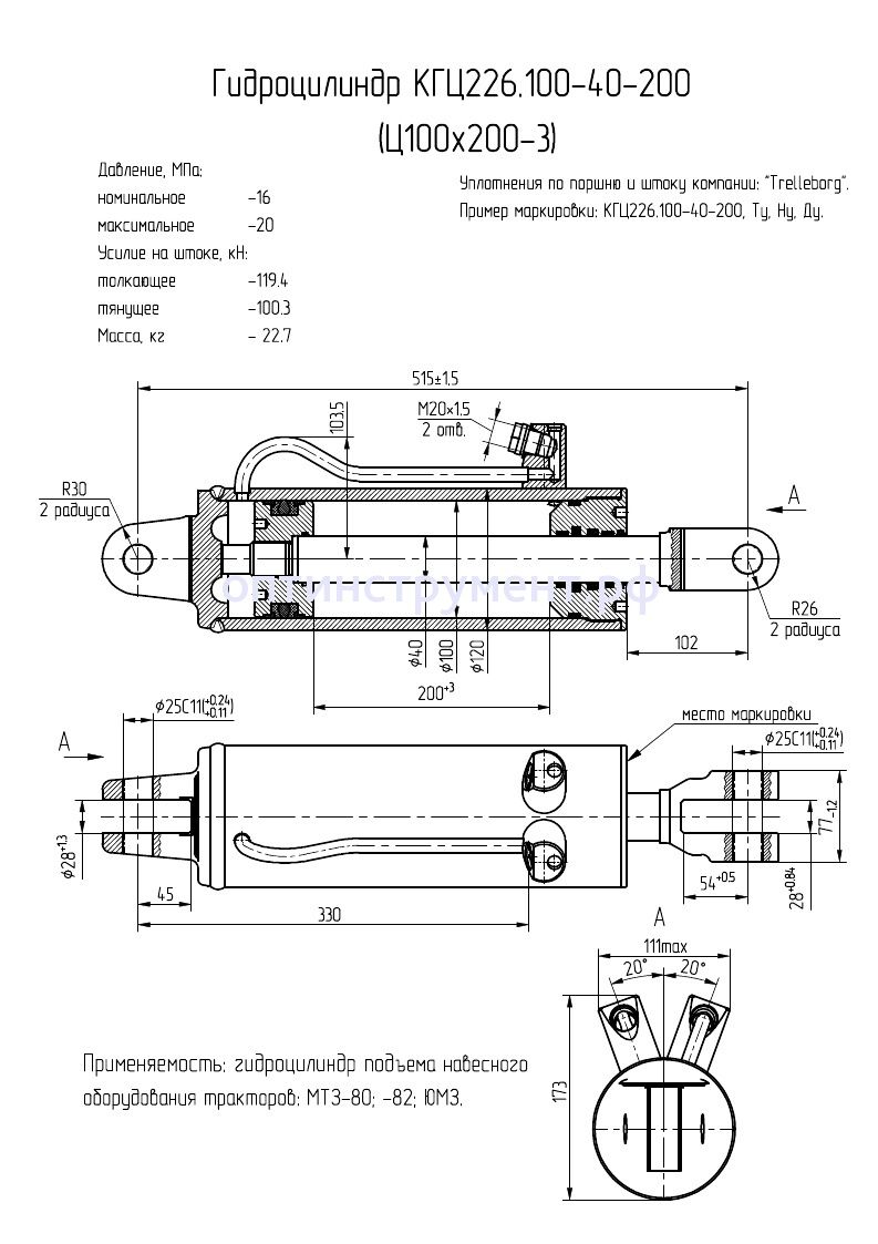 Гидроцилиндр задней навески тракторов "МТЗ" КГЦ 226.100-40-200 в продаже по цене 0 руб. в Интернет-магазине Проф-инструмент с доставкой в Йошкар-Оле. Звоните по телефону +8 (800) 302-10-51.