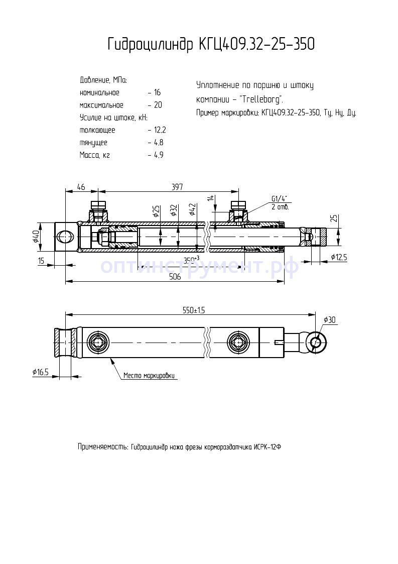 Гидроцилиндр ножа фрезы кормораздатчика "ИСРК-12Ф" КГЦ 409.32-25-350 в продаже по цене 0 руб. в Интернет-магазине Проф-инструмент с доставкой в Йошкар-Оле. Звоните по телефону +8 (800) 302-10-51.