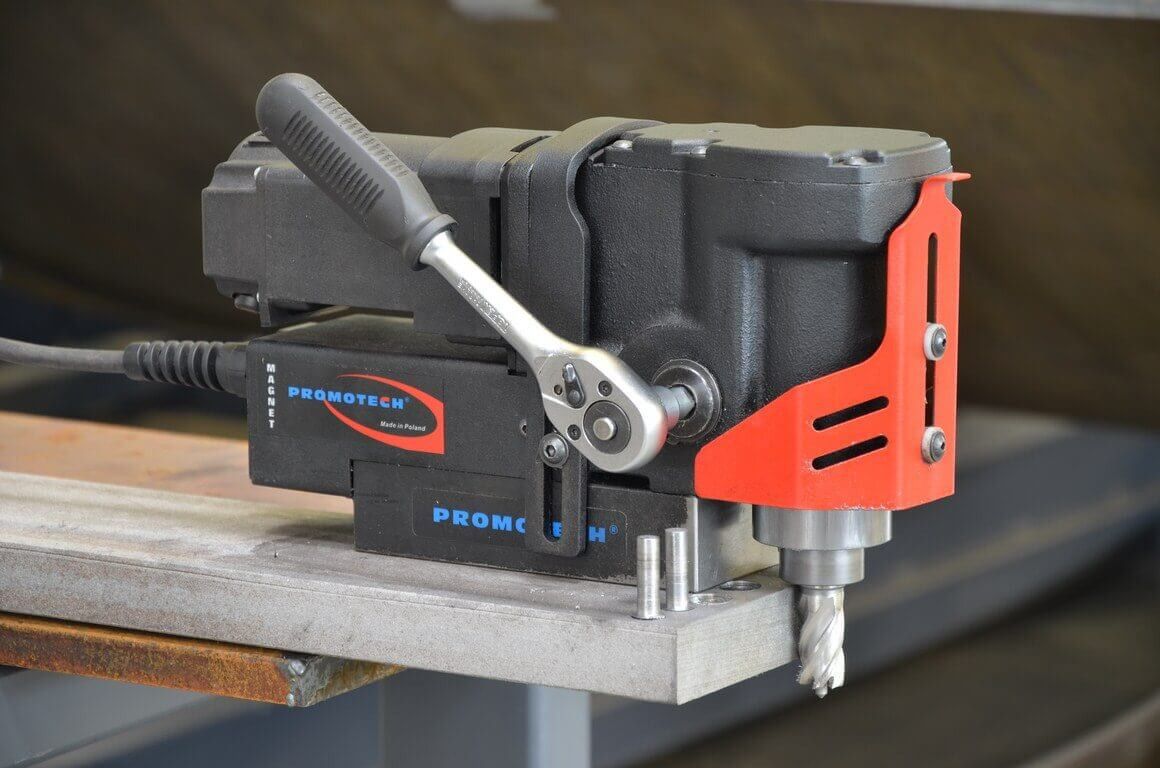 Данный магнитный сверлильный станок объединяет в себе все плюсы аналогов. Помещается даже в самых узких местах, успешно прошел все испытания, соответствует всем стандартам качества промышленного инструмента. Благодаря малому весу и сверхкомпактной конструкции дает возможность выполнять работы по сверлению, рассверливанию и зенкерованию металла в местах с очень ограниченным пространством, где из-за своих габаритов не помещаются обычные магнитные сверлильные станки.