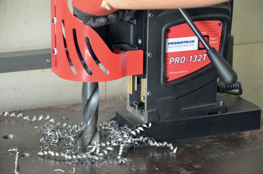 Машина сверлильная PRO 132T от Promotech – это самая мощная модель, созданная для сверления отверстий максимальных диаметров. Электропривод с четырехступенчатым редуктором обладают широким рабочим диапазоном - сверление от 12 и до 130мм! Но машина с весом всего 31 кг остается мобильной и её может переносить и устанавливать один рабочий. Электромагнит мощностью 25 КN способен удерживать машину даже в потолочном положении. Кроме того, доступна оснастка для крепления на трубу.