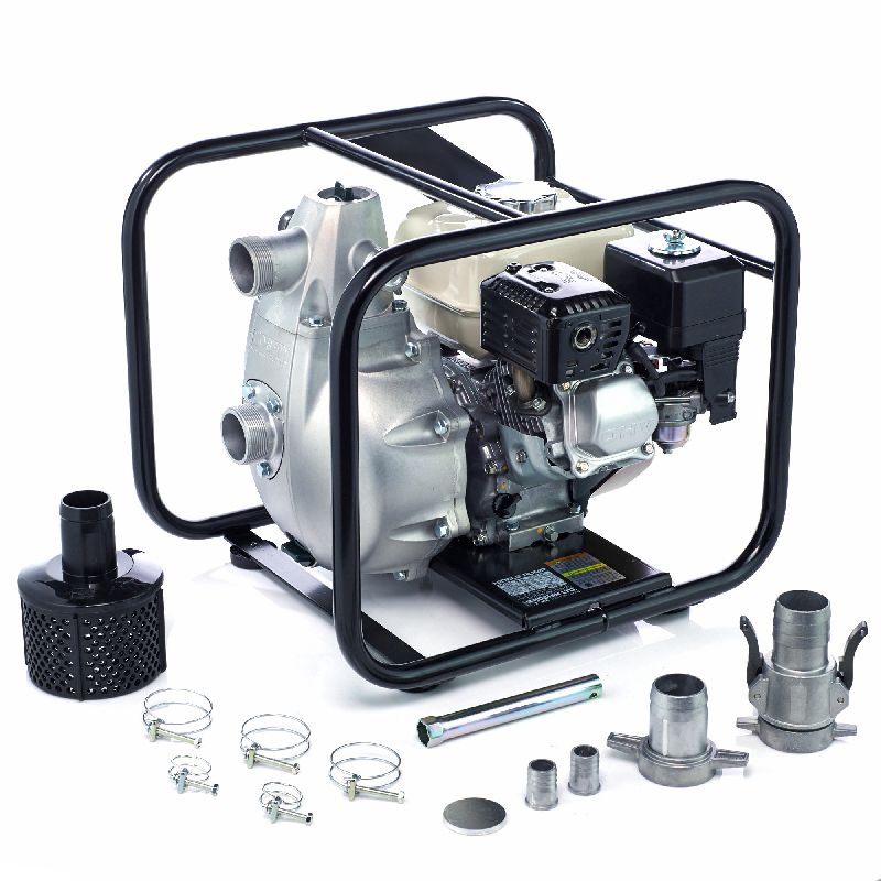 Высоконапорная, пожарная бензиновая мотопомпа. Тушение пожаров, перекачка воды на дальние растояние, полив. Мощность 4.3 лс, Производительность 25.8 куб м/час, напор 80 м, двигатель Honda GX160 Hi Revolution с датчиком масла в картере , D вх/вых 50/50-25-25 мм, размер частиц 6 мм, бак 3.1 л.
