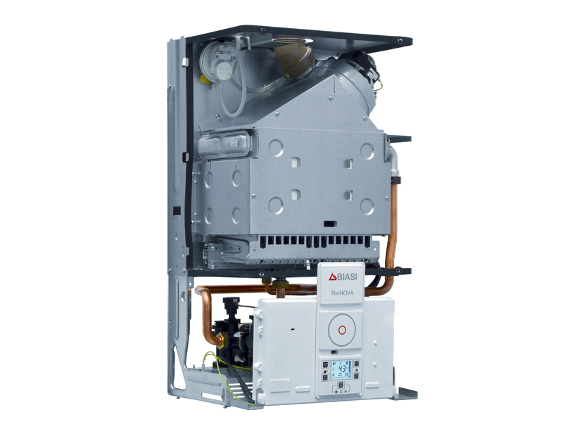 RINNOVA – двухконтурный настенный газовый котел предназначен для небольших систем отопления и горячего водоснабжения. Оснащен двумя теплообменниками: первичный - медный для нагрева системы отопления и вторичный – пластинчатый изготовленный из нержавеющей стали служит для нагрева воды горячего водоснабжения.