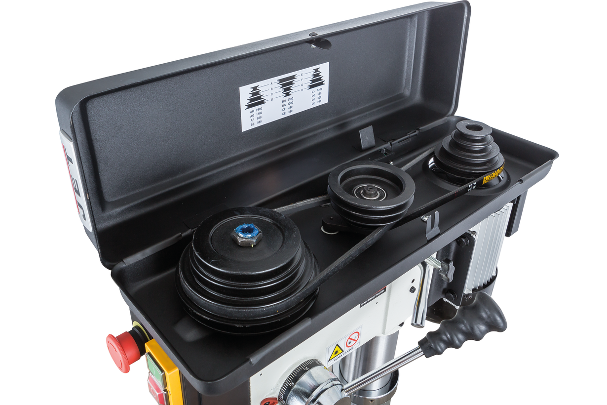 - 12-ступенчатая регулировка скорости вращения шпинделя переустановкой ремня
