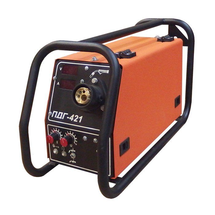 Полуавтомат предназначен для полуавтоматической сварки на постоянном токе плавящейся электродной проволокой в среде защитных газов в комплекте с источниками для МИГ/МАГ сварки. ПДГ-421 (c 4 роликовым подающим механизмом) обеспечивает стабильную подачи проволоки качественную сварку на расстоянии до 30 метров от источника при любом расположении сварочных кабелей.