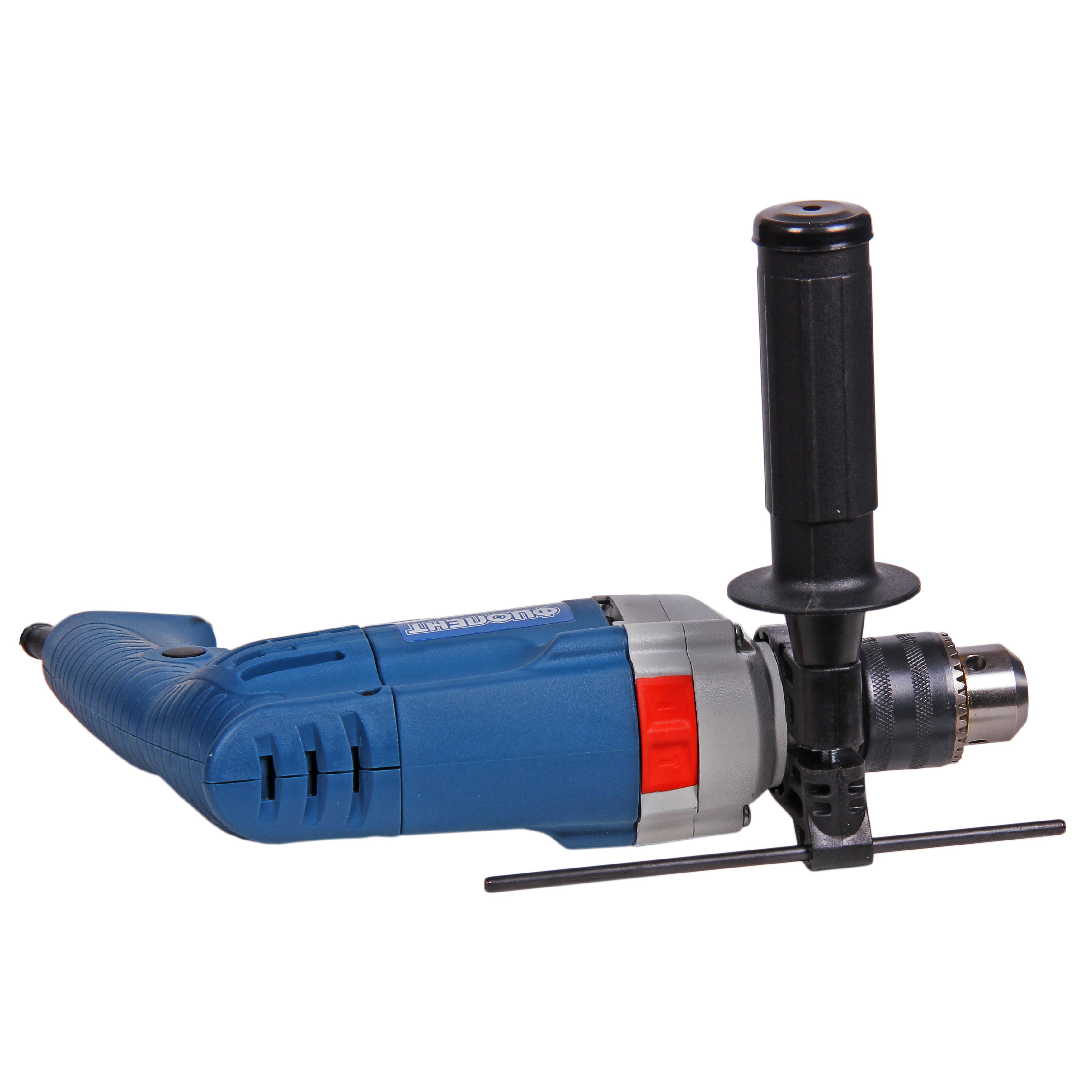 Самая компактная дрель в своем классе, ЗВП, реверс, управляющая электроника. Дополнительная рукоятка, ограничитель глубины.
