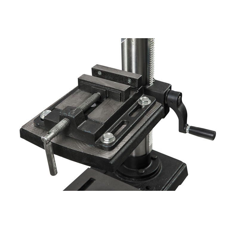 Станок укомплектован чугунным столом, регулируемым по высоте и по углу установки. Сверлильная часть тоже выполнена из чугунного литья. Для контроля глубины сверления предусмотрена шкала с миллиметровой и дюймовой разметкой, а также регулируемый ограничитель. Скорость вращения шпинделя меняется в широких пределах перестановкой ремней в редукторе (он имеет две ступени).